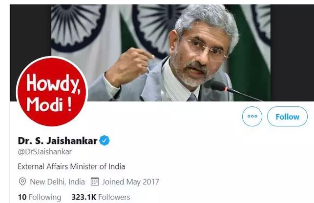 – अमेरिका में ‘हाउडी मोदी’ कार्यक्रम के समर्थन में भारतीय विदेश मंत्री एस. जयंशकर ने अपनी प्रोफाइल फोटो को बदल दिया है। उन्होंने Howdy, Modi! को अपनी प्रोफाइल पर लगाया। इसके अलावा के केंद्रीय मंत्री रामविलास पासवान, महिला एवं बाल विकास मंत्री स्मृति इरानी और रेल मंत्री पीयूष गोयल समेत राधामोहन सिंह और तमाम नेताओं ने भी ट्विटर पर हाउडी मोदी को अपना प्रोफाइल बनाया है।